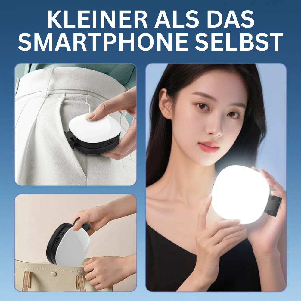 GlowBuddy™ liefert dir sofort perfektes Licht für Selfies, Vlogs & Partyfotos.
