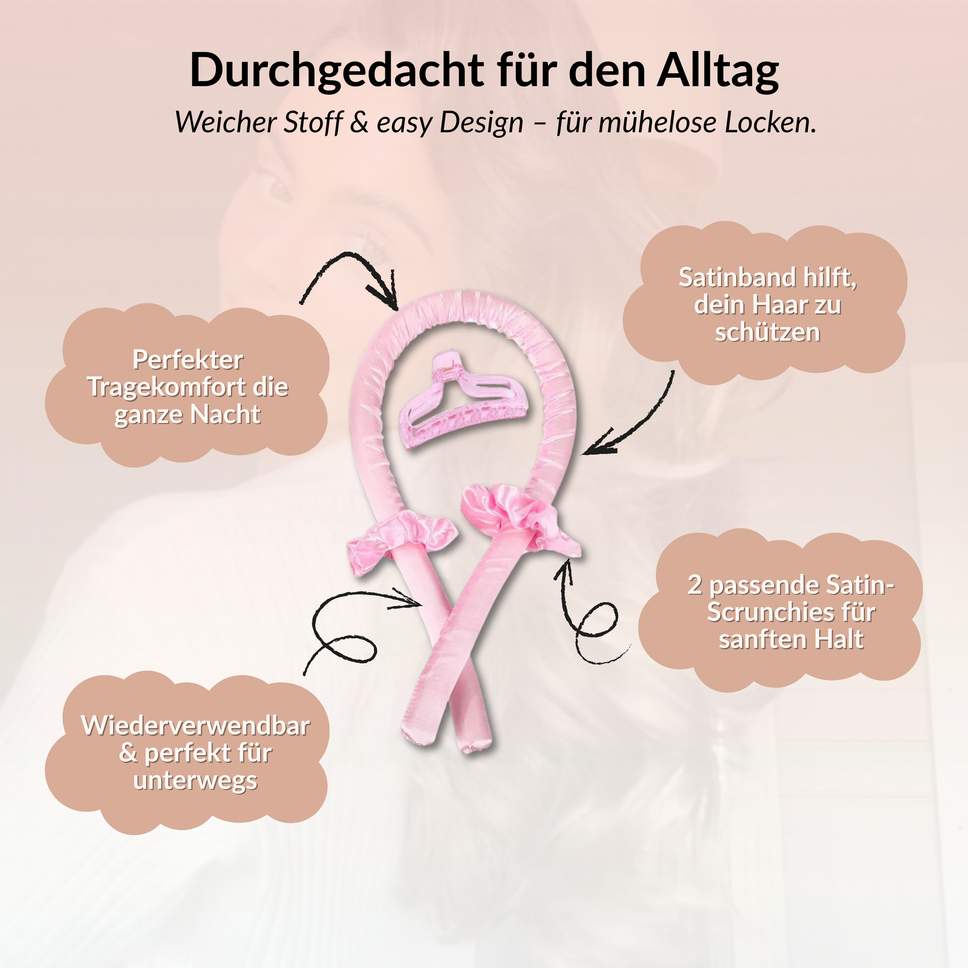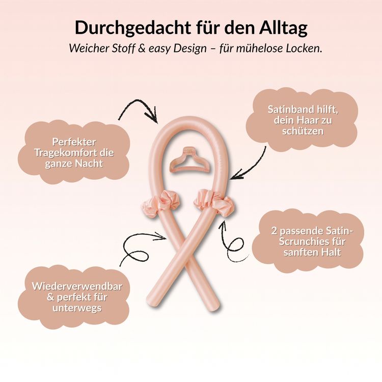 SleepyCurls⢠formt deine Haare sanft zu Locken, während du schläfst â ganz ohne Lockenstab oder FĂśhn. Der weiche Schaumkern schont dein Haar, verhindert Hitzeschäden und hilft dir, deine natĂźrliche Haarstruktur zu betonen.